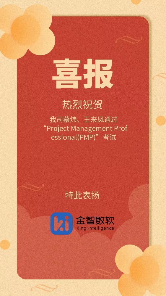 热烈祝贺我司蔡炜、王来凤通过PMP考试