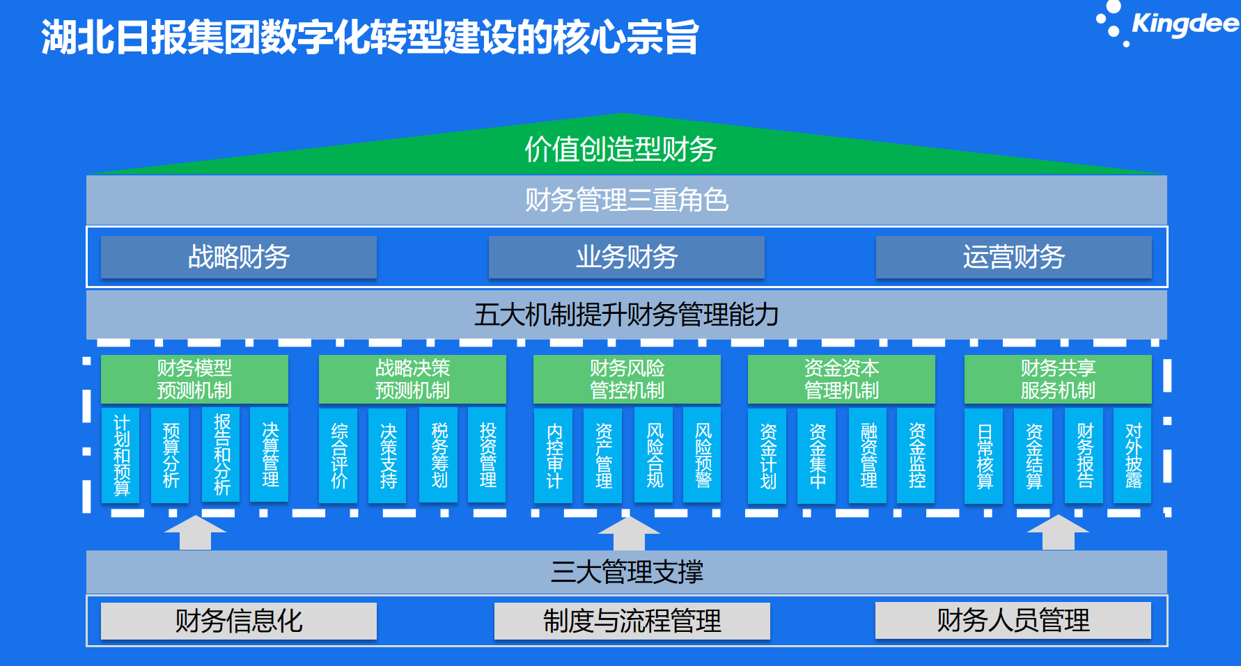 以价值服务,价值创造为导向,实现湖北日报财务管控由战略想运营管控转型,实现精益化经营。