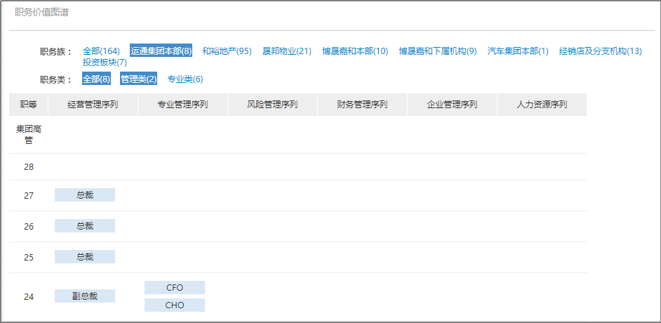 在金蝶s-HR系统中,运通总部搭建了统一的职位体系,包括职位编码、职位命名、编制、职等、职务族、职务类等标准;搭建了统一的薪酬标准体系,包括薪酬标准表、薪酬项目、薪酬计算公式、薪酬审批流程、薪酬统计口径等。各业务板块基于总部构建的标准体系,按授权进行组织维护、定薪调薪、薪酬核算、薪酬发放等具体业务执行。