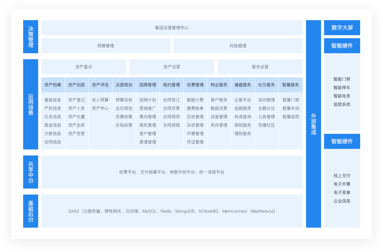 通过标准化的资产管理流程,完善的移动化,线上化招商场景,业财税一体化等为企业运营提效,真正盘活资产