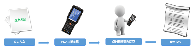 仓库人员根据盘点方案,进行盘点准备。仓库人员直接PDA扫描物料条码进行仓库盘点。确认扫描出货数据无误后,直接系统提交生成“盘点报告”。